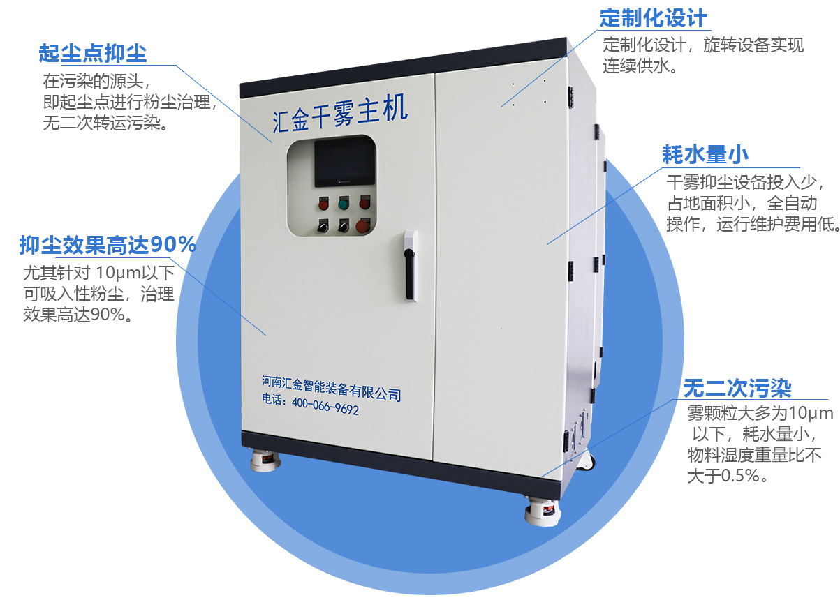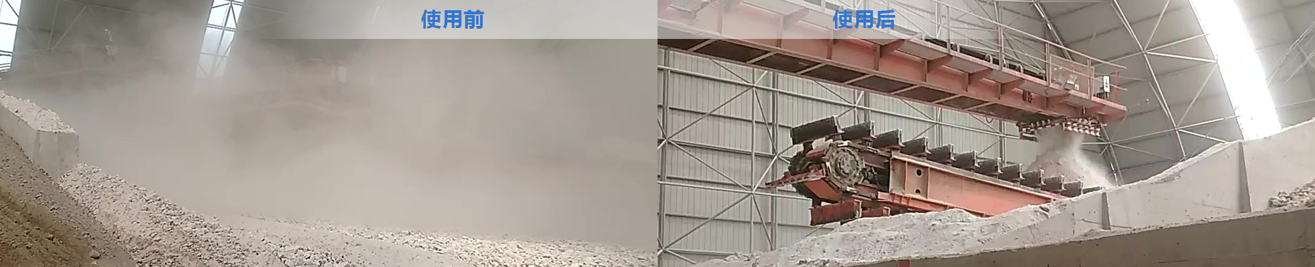 目前,在水泥廠、鋼鐵廠及煤礦等企業的物料堆儲、轉運、裝卸等生產過程中,易產生大量且治理難度較大的粉塵,從而造成嚴重的環境污染。面對如此惡劣情況,匯金采用干霧除塵技術,利用超聲波產生的微細水霧捕集凝聚微細粉塵,將粉塵直接抑制在起塵點,避免了揚塵的出現,在不顯著增加產塵物料濕含量前提下,使粉塵得到有效控制。